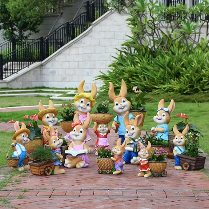 UNIQUE DESIGN - These cute bunnies add fun to your lawn and charm to your garden. Vibrant colors and exquisite details make this striking garden. The statue is sure to stand out among your outdoor decorations.