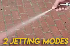 Free feel to switch between 2 nozzles (high jet / fan mode) for different purposes - Jet nozzle for powerful, concentrated cleaning; fan nozzle for gentle washing & spraying with large coverage.