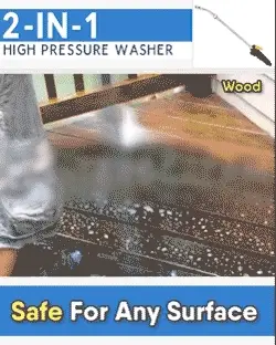 2-in-1 High Pressure Washer connects to all standard garden hoses and performs powerful high pressure washing to remove tough stain, mold, mud, dirt etc. without scrubbing manually. Able to clean & restore luster of any surfaces including wood, brick, concrete, sidings, plastic, glass and more.