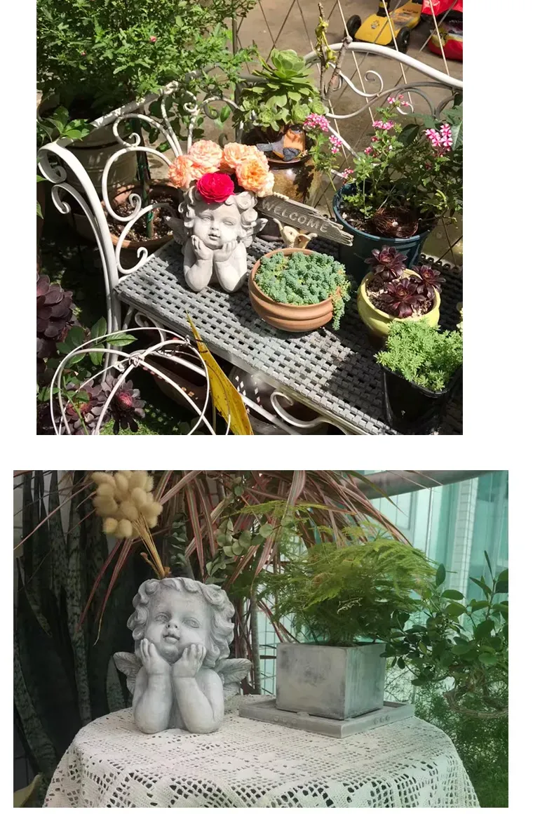 Original design: This original design highlights artistic taste and has exquisite decorative effect. This is a vintage angel statue planter, handmade and hand-painted with exquisite detail and color. This is a concrete planter with a natural rough texture that contrasts with the smooth and delicate plants.