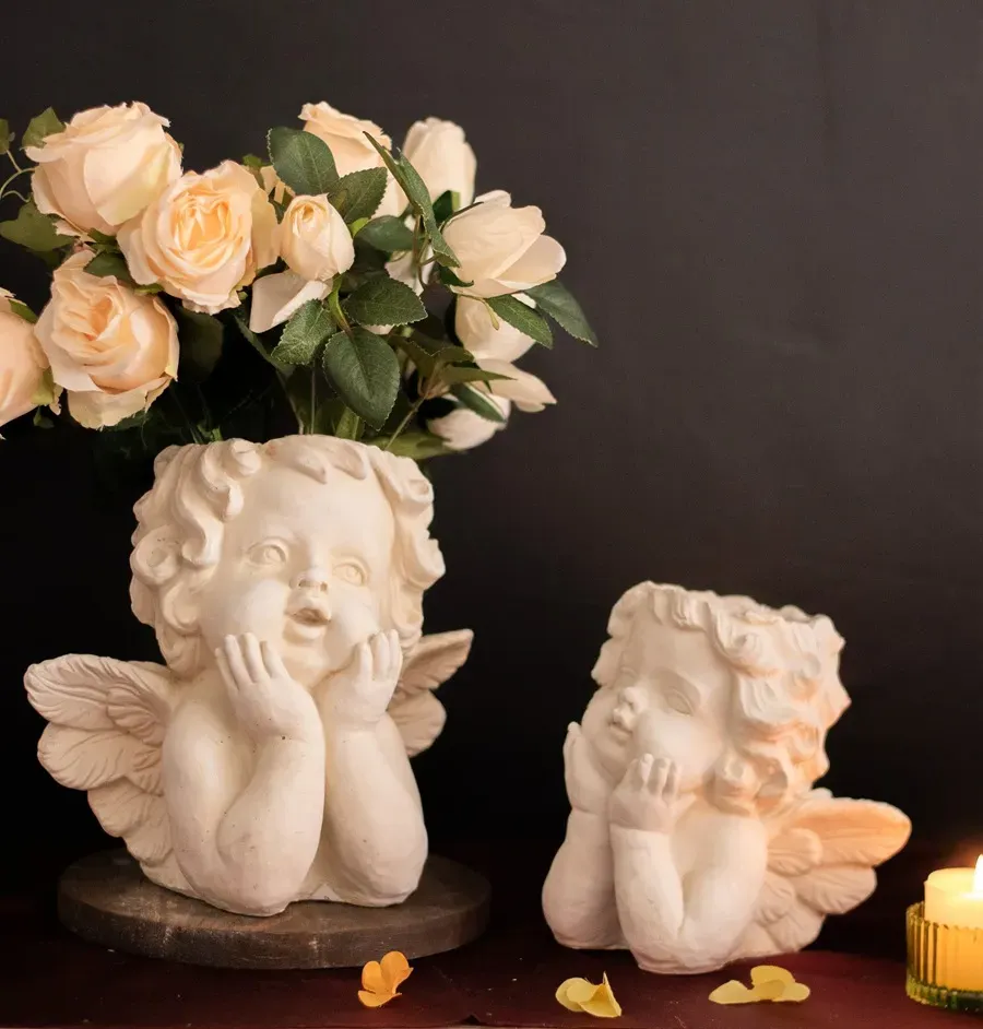Art flower pots: This kind of art flower pots are suitable for decorating living rooms, balconies, gardens, etc. It is an abstract figural ornament depicting an angel with wings and halo. It is a creative flower pot desktop decoration that can show your artistic taste and personality.