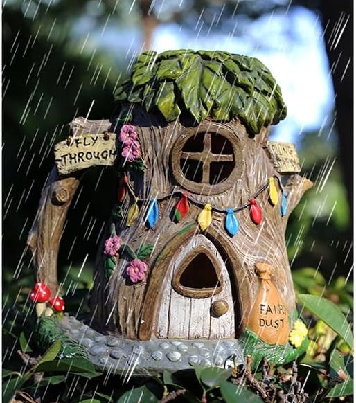 Made from high-quality resin material and coated with resilient, fade-resistant paint, this solar fairy house promises to stand the test of time while adding a magical touch to your garden.